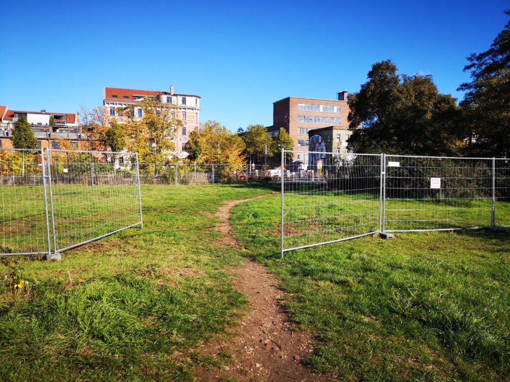 Zu unserer Überraschung ließ die Gesellschaft zur Entwicklung und Sanierung von Altstandorten mbH (GESA) am 9. Oktober 2025 um die ihr gehörende Teilfäche des Jahrtausendfelds – ca. 2500qm neben den 23000qm die der privaten Stadtbau AG gehören – Bauzäune aufstellen. Die Fläche lag jahrelang brach und wird täglich von hunderten Menschen genutzt – warum jetzt? Wir haben per E-Mail dort angefragt und erhielten folgende Antwort, welche wir hier veröffentlichen: